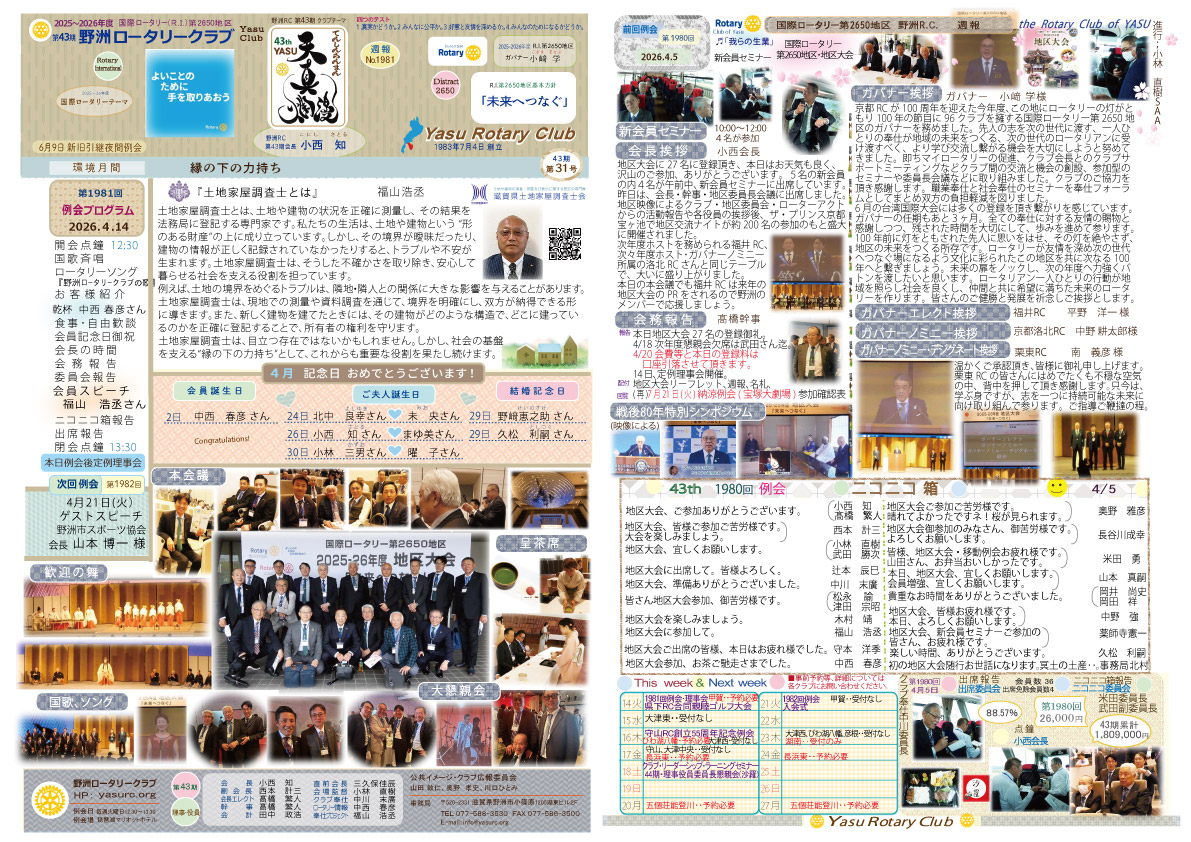 【43期の週報】 (発行後のナンバーのみご覧になれます) (3/I)