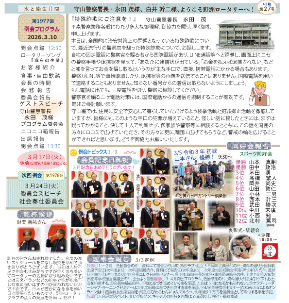 New 3/10、1977号の週報を発行