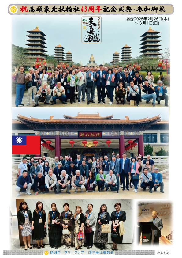 2026年2月、姉妹クラブ・高雄東北扶輪社を訪問しました。